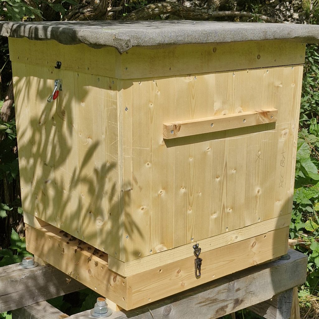 Zu guter Letzt erinnerte ich mich auch wieder an die alten Betriebsweisen und an Ferdinand Gerstungs Hinweise, dass die Bienenwohnungen gegen Wärmeverlust und Temperatureinfluss gut isoliert sein müssen. Die Arbeiten von Sigrun Mittl (Bienendialoge), Roland Sachs (Bienenbau und Bienenbeute) u.v.a.m.  gaben mir Anlass, die Isolierung der Hochwaben-Magazinbeute voranzutreiben. So entstand daraus die